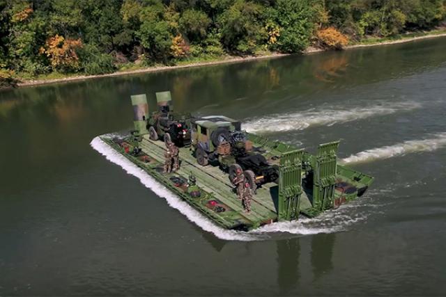 Le Pont Flottant Motorisé “PFM", solution dédiée au franchissement continu ou discontinu de brèches humides.