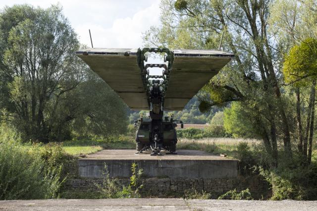 Le Pont d’Assaut Modulaire permet aux véhicules les plus lourds de franchir des brèches sèches.