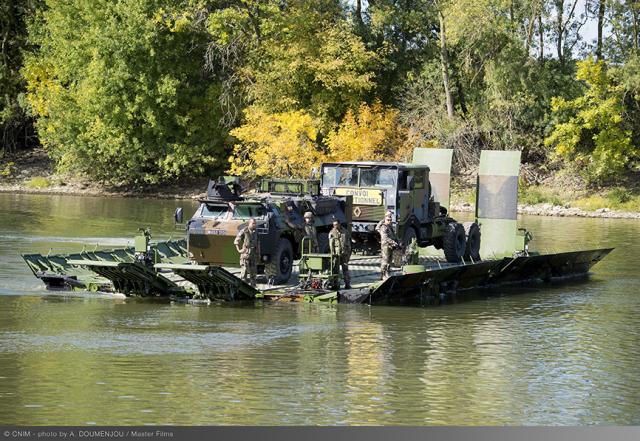 Le Pont Flottant Motorisé dédiée au franchissement continu ou discontinu de brèches humides pour les véhicules militaires lourds peut être déployé en 2 configurations pont ou ferry.