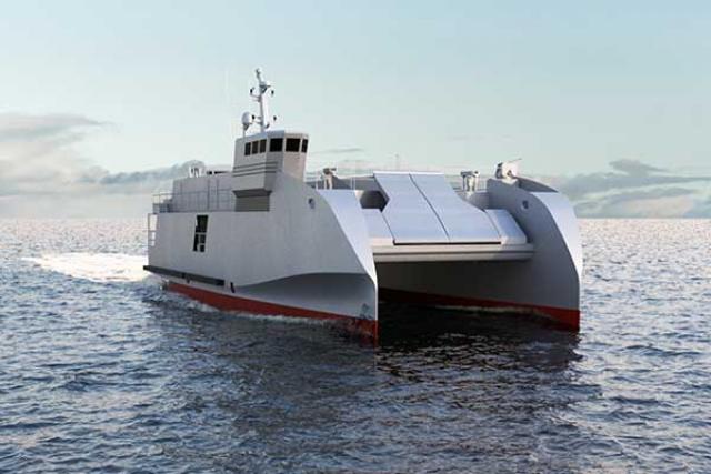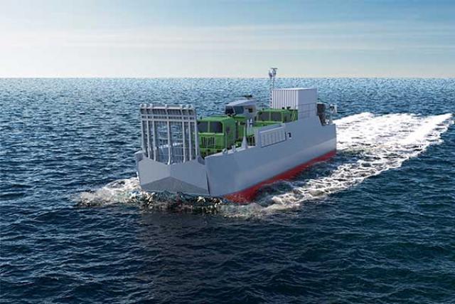 le L-CAT Shore-to-Shore dont les performances de vitesse et de capacité d’emport en font le meilleur navire amphibie autonome du monde : 80 tonnes @ 25 nœuds